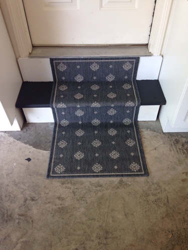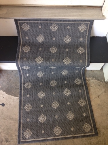 I found an inexpensive rug for the steps. I figured I would match the door to whatever rug I found. I got this great rug on clearance from the Ballard Design outlet for only $6 dollars. Ikea also has some cute rugs for cheap.