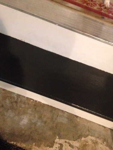 I started by painting the step up to the door. It was part white and part weird wood color. We already had some black and white paint, so I went for those colors to paint the step. I ended up doing three coats of paint over the steps. I wanted the paint to really hold up to the dog claws and foot traffic.