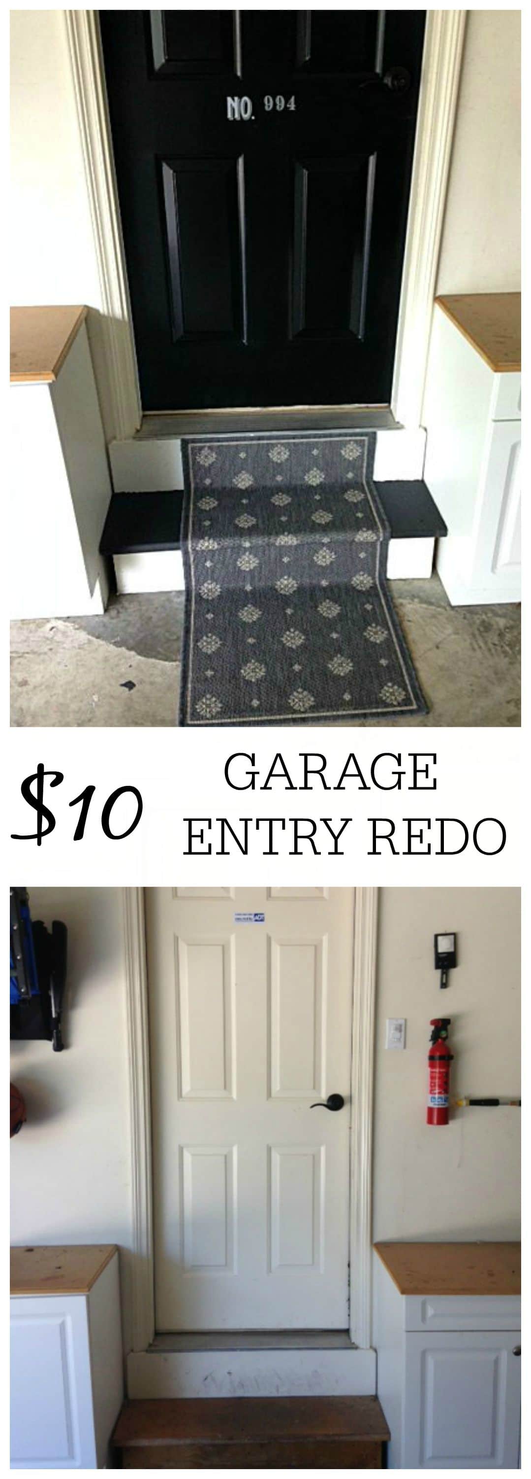 I thought it would be fun to do a small redo on our garage entry door. I didn't want to spend a lot of money on it, since we were the only people who usually see it. So, I ended up with this pretty cute $10 garage entry redo.