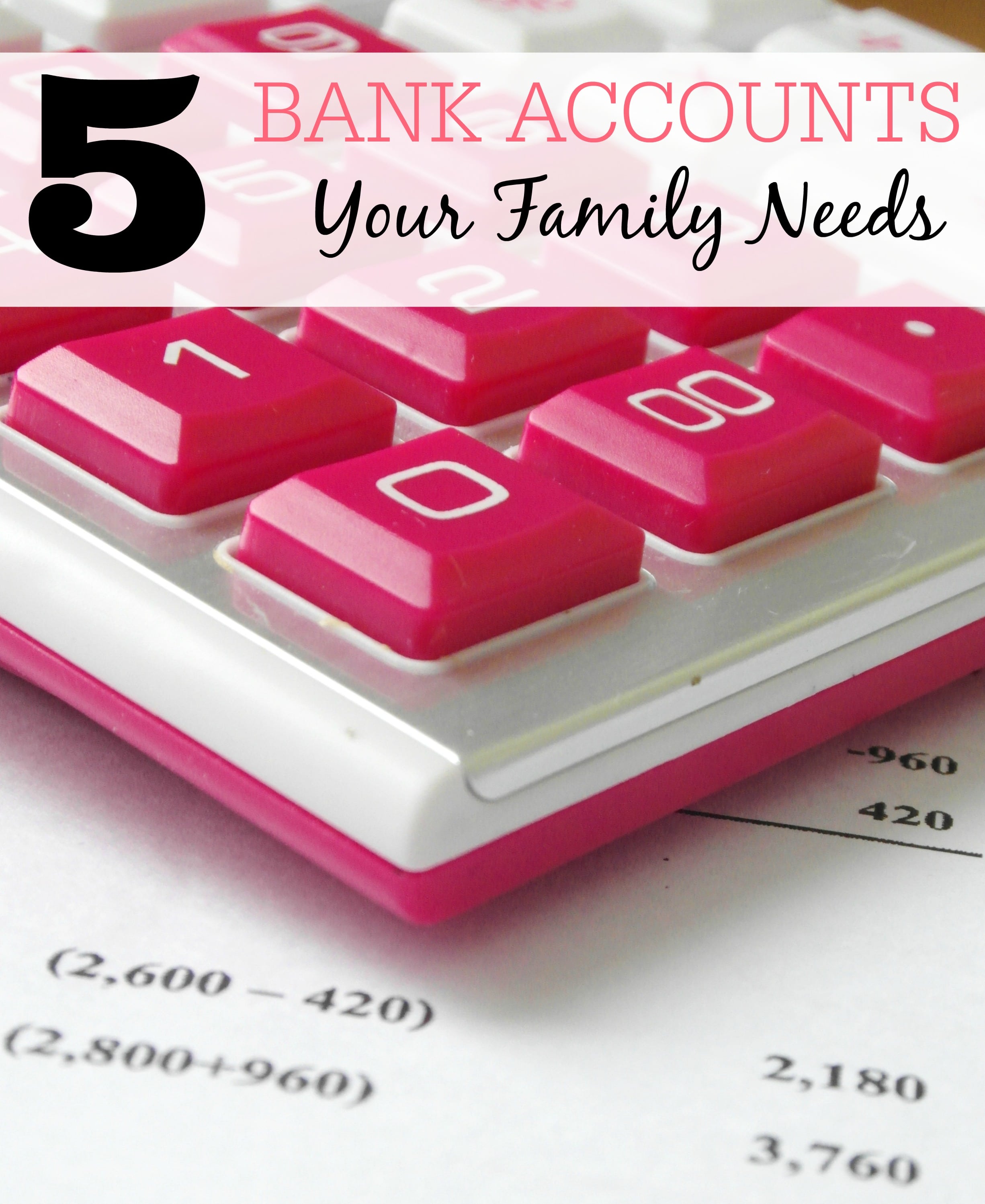 By having separate accounts we make sure that money that we need next month for a high heat bill doesn't get spent this month on other things. We now have a total of 18 different accounts, and although it takes a bit of extra time with the separate accounts it is totally worth it. You don't need to have 18 accounts, but these are the 5 bank accounts your family needs.