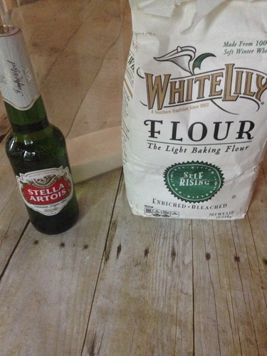 You only need four ingredients. Self rising flour, can of beer, sugar, and some melted butter. You can use any kind of beer for the bread. I have also used non-alcoholic beer and it has turned out just fine.