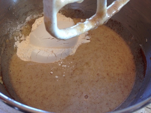 - Mix in baking soda, baking powder, and flour.