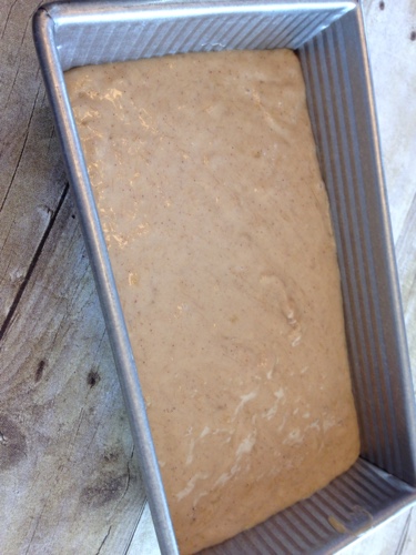 Pour the dough into a 9 x 5 loaf pan. I love my pan (see notes below for update) it's non-stick and the bread just falls right out of the pan. If you don't use non-stick, you will want to use a cooking spray first.