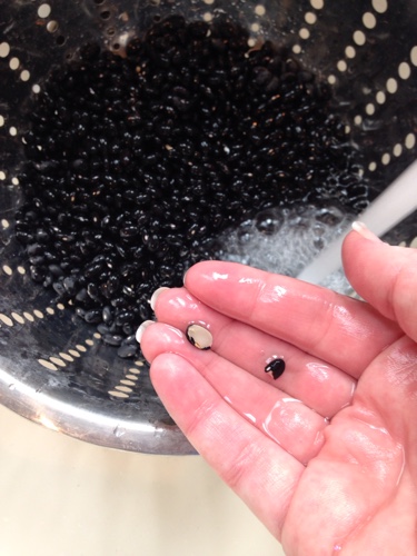 If you haven't cooked dried beans in a slow cooker before it really is easy. I like to make around a pound at a time. Then, I can freeze whatever leftover beans I have for another time. Start by washing off your beans. You will want to sort through your beans and pick out any broken beans.