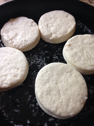 Place biscuits in a greased cast iron skillet. It's okay if they are touching.