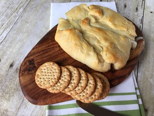 Let it cook until the crescent starts to look a nice golden brown. This will take about 20 minutes. Remove from the oven and serve with crackers.
