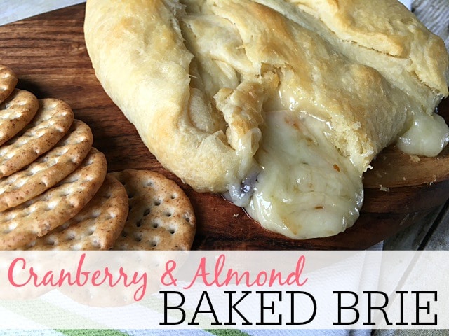 As it gets closer to the holidays there are always parties to bring food to and guests stopping by. It's often hard to find an appetizer that is easy to throw together, that doesn't take lots of time. If you are looking for a simple appetizer to serve, this cranberry and almond baked brie is the appetizer for you. It takes about 10 minutes to make and looks and tastes fantastic.