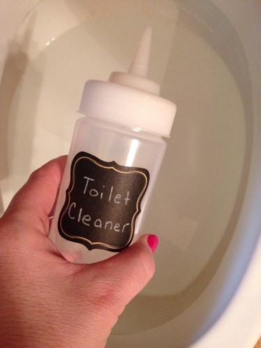 To make the homemade toilet cleaner easier to add into the bowl I picked up a squeeze bottle. I can quickly mix up the DIY toilet cleaner in the squeeze bottle and it is so easy to spray it into the toilet.