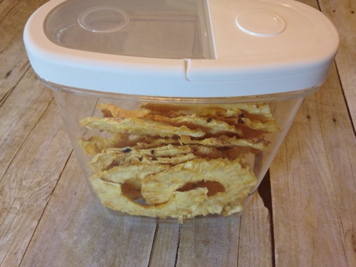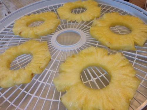 I love pineapple when it is in season. It has that perfect combination of sweet and tangy. The problem with pineapple is that there is such a short window of when it is in my price range. I like to pay about $.79-$.99 per pineapple. So when I saw a great price on pineapples I picked some up and made some dried pineapple chips. They are easy to make and are a great snack for summer.