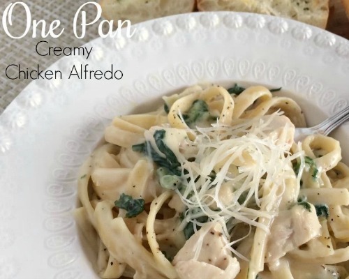 I love pasta for a quick and cheap dinner. This creamy chicken alfredo completely delivers on the taste and an easy meal. This is a great dish to use when you have just a little bit of chicken left. Instead of putting in 2 cups of chicken I just put in whatever we have left.