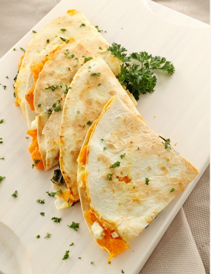 Another quick and easy meal are quesadillas. Just take some tortillas, add shredded cheese, and chicken and you have an easy and quick meal. Just heat them up for a few minutes in the oven or microwave.