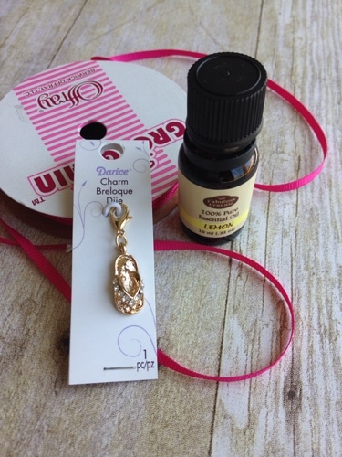 I bought some ribbon to make a simple wrap bracelet. Then I add the lemon and peppermint oil directly onto the ribbon to keep away the mosquitos. No more spraying myself down before I go outside. I just grab my bracelet and put it on. It's so easy to make one and will only cost you a $1-$2.