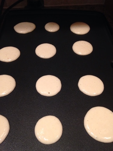 You can make your pancakes using your favorite recipe. I use the recipe below for my pancake mix. I like to make up mini pancakes so they are easy to dip in syrup. Mini pancakes are a favorite of my kiddo and they are less messy to eat if you have little ones. They are easy to make using a squeeze bottle. You can grab one here for cheap on amazon.