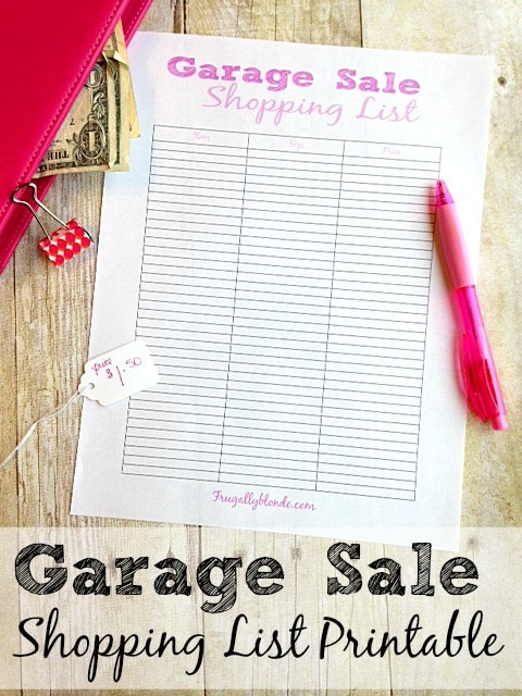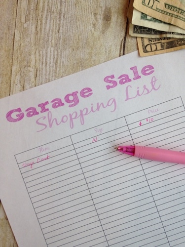 Just head over here to grab this garage sale shopping printable. It's just an easy way to keep track of what you need for the next year. Just print it, write down what you will need over the next year and carry it with you when you head out to the garage sales. Love to save money? You can go here to subscribe to get the latest posts emailed to you daily.