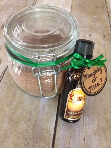 Pour into a mug and add some marshmallows. I love to add some Kahlua to my hot cocoa, just don't get it mixed up with the kids hot cocoa! It also makes a great Christmas present. You can tie some ribbon around it or add a small bottle of Kahlua.