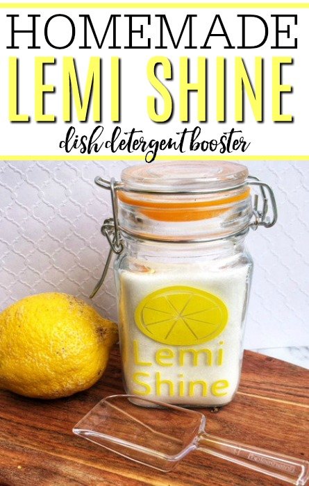 This simple recipe for homemade lemi shine will keep your dishes from getting dull and help fight grease and other food stains. Once you start adding this dish detergent booster to your dishwasher you won't want to stop!