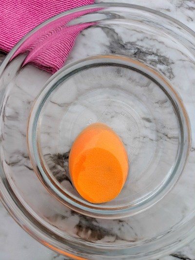 Spending a few minutes disinfecting your beauty blender after cleaning it is important. To disinfect your beauty blender take a microwave safe bowl and fill it with water. Then add your beauty blender to the bowl and make sure that it soaks up some water.