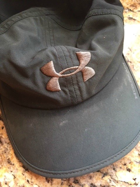 My husbands' baseball cap was smelly and dirty as you can see in the picture below. It had sweat stains around the brim of the cap that I wanted to clean off.