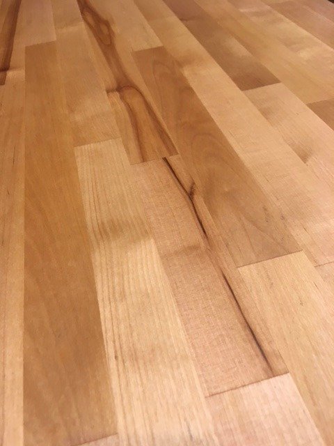 Two years ago we added an island to our kitchen. Instead of doing a granite or marble countertop we decided to do a butcher block countertop. It was very reasonably priced and it looks great.