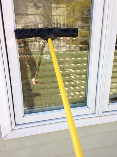 Unfortunately, the dirt and grime were so heavy on the window that it just smeared it around. I didn't want to pay a bunch of money for a cleaning kit and I soon realized that I could use my mop. Yup, that's right just a plain old mop. I have used this method for the last couple of years and it works great.