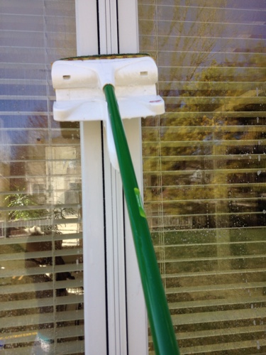 You can even use the mop to clean the trim of your window while you are washing them. Because my windows are white they get really grimy looking. Just spraying them and scrubbing with a mop helps get them cleaner looking.
