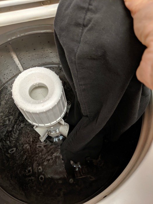 If you have hard water where you live then you may notice that the rit dye is still stuck on the side of your washing machine. This is because the machine has hard water build-up on it and the dye is turning the hard water build up colors. You will want to run an empty load using the citric acid.