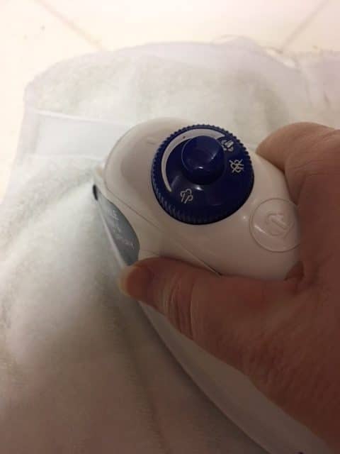 Once the iron is heated up lay the wet washcloth over the area you want to clean. Then take the iron and run it over the washcloth for about 10 seconds. You will want to make sure you keep the iron moving over the different areas of the washcloth so you don't overheat the vinyl.