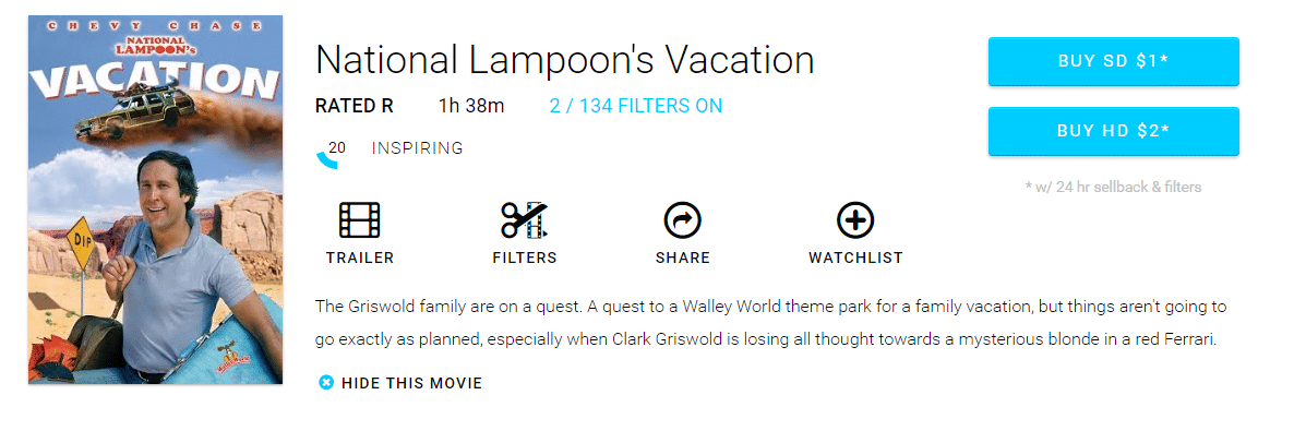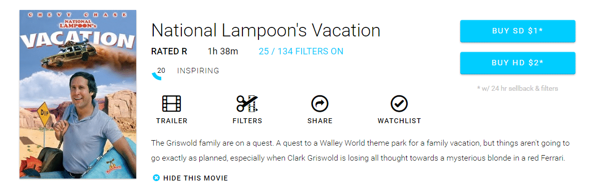 You can now choose to buy the movie. You will pay $20 to stream it and get $19 back when you return it within 24 hours. Just like Redbox, it is $1 a day. So if you return it two days later it will cost you $2. Unlike Redbox, you get to do everything at home and don't even have to leave the house. Plus, you can enable all of your own filters.