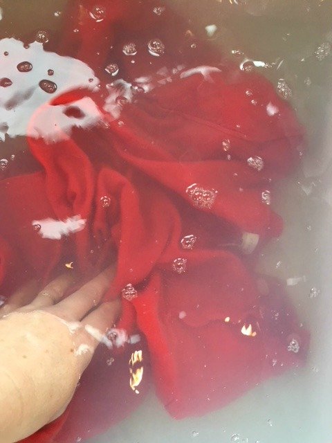 After 30 minutes remove the clothes from the water and gently wring the water from them.