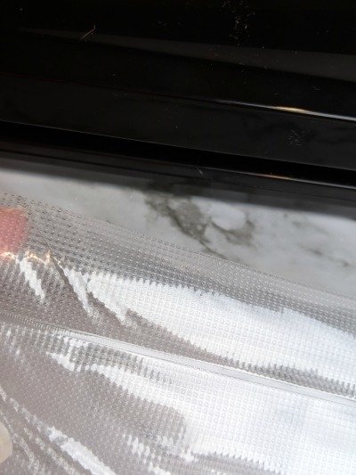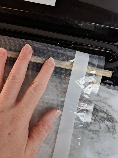 Once you have your bags cut you will want to seal the first side of the bag. Just insert it in the vacuum sealer, close the lid, and press the seal button. When it is done remove the bag and finish doing all the bags. You can see below how it well it seals.
