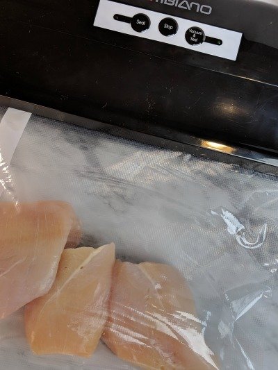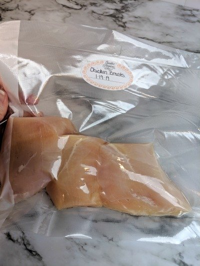 We mostly use the vacuum sealer to freeze meats. The trick to saving a lot of money is to buy the large family packs of meat when they go on sale. Aldi had boneless skinless chicken breasts on sale for $1.49 so I picked up 2 large packages.