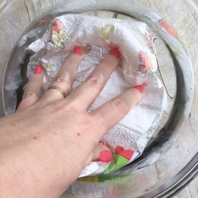 Once the diaper is looking very full tear it open and remove all of the gel. The gel should absorb the remaining water in the bowl.