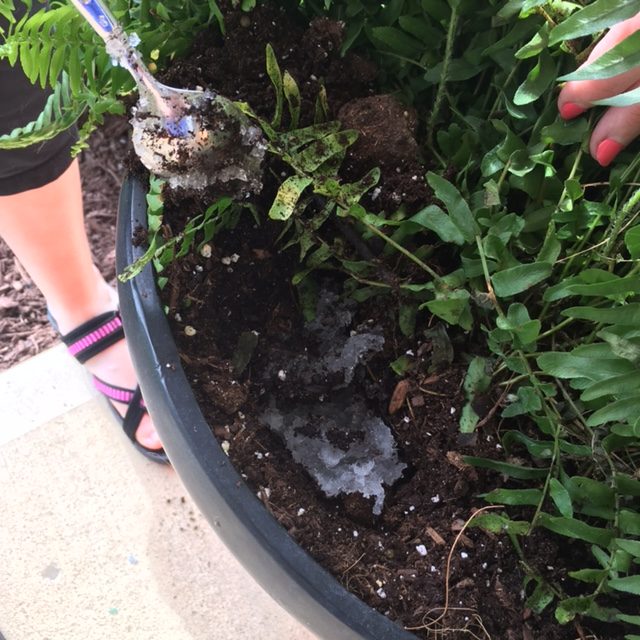 You will want to mix the gel in with the dirt for your plants. If you are planting something you can just mix in the gel with the dirt. I am adding them to my hanging plants so I just moved back some of the dirt and added spoonfuls of gel all around.