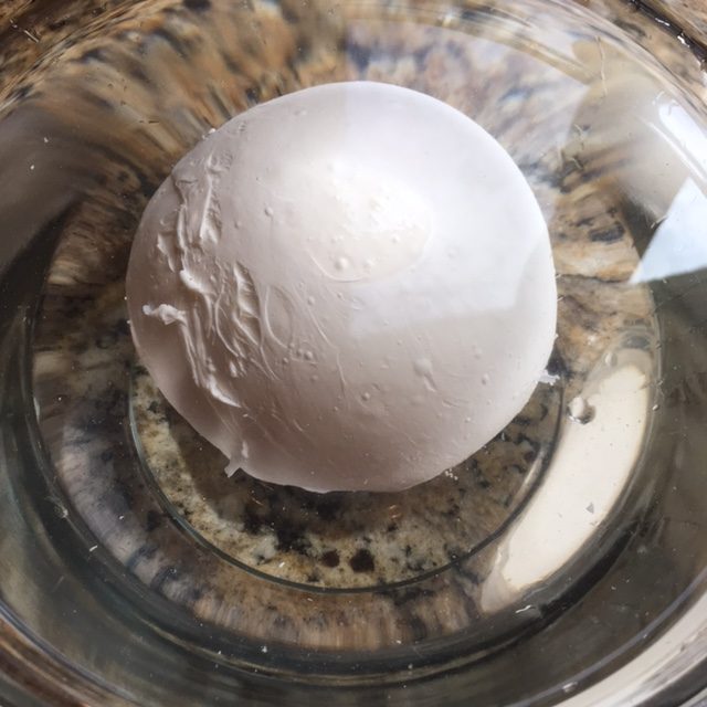 You will want to knead and stretch the cheese for a few minutes. After a few minutes shape the cheese into a ball and place in a bowl of cold water for 5 minutes. After 5 minutes add in ice cubes and let sit for 15 minutes.