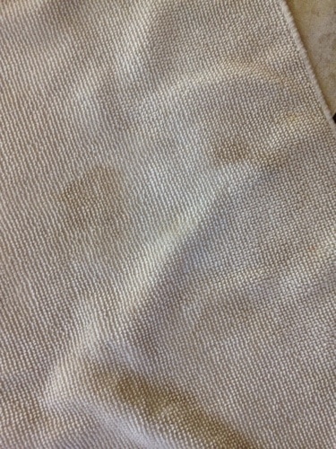 After this I decided to try good old bleach. I filled a bowl with 5 cups water and 1 cup bleach. Then I let the towels soak for about 8 hours. I didn't see this tip on pinterest, but my mom would sometimes do this to get stains out of whites. I really wanted to try to avoid using bleach, but since I didn't have any luck with the first two I thought I would try it.