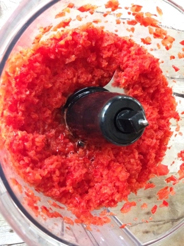 Once you have diced them place them in a food processor and pulse for around a minute or until they are in small little pieces.