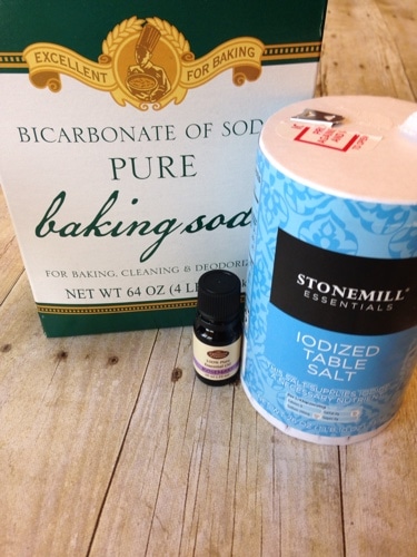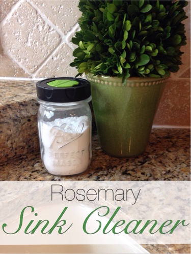 Mix 2 cups baking soda and 2 tablespoons salt in a jar. Add 15-20 drops of rosemary essential oil to baking soda mixture. Add shaker lid and shake to combine. Sprinkle a small amount in a damp sink and scrub with a microfiber cloth. Spray down the sink when you are done.