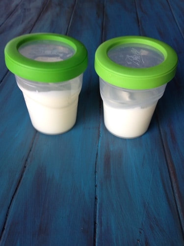 While the butter is very liquefied you will want to move it into the containers it will be stored in. I love these containers from Ball. Place them in the fridge and after about an hour you have spreadable butter.