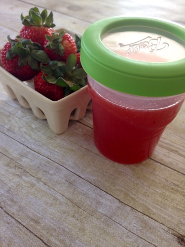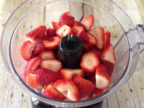 Place the strawberries in a blender or a food processor. I blend mine until they are a purée, however if you like a few chunks you may want to just pulse your food processor a few times.