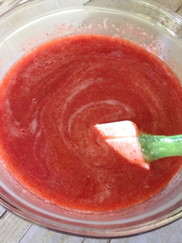 Measure out 2 cups of the strawberry purée and place in a bowl. The rest you will not be using.