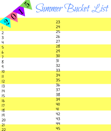 I created this 2015 summer bucket list printable so my family could fill it out with ideas to this summer. Now we can choose two or three things to do each week to mark off our bucket list. You can get a printable summer bucket list here. It's a pdf, so just click on over and print.