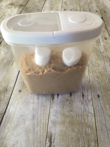 I also add two regular size marshmallows to the brown sugar container. Whenever I need to get some brown sugar I can just take them out and then put them back in when I am done.