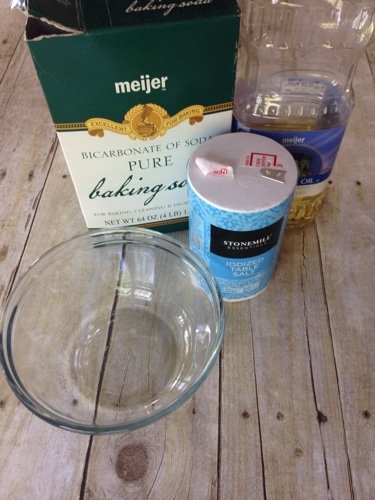 While the jar is soaking, mix up 1 tablespoon baking soda, 1 tablespoon salt and 1 tablespoon oil. This will make a very thick paste.
