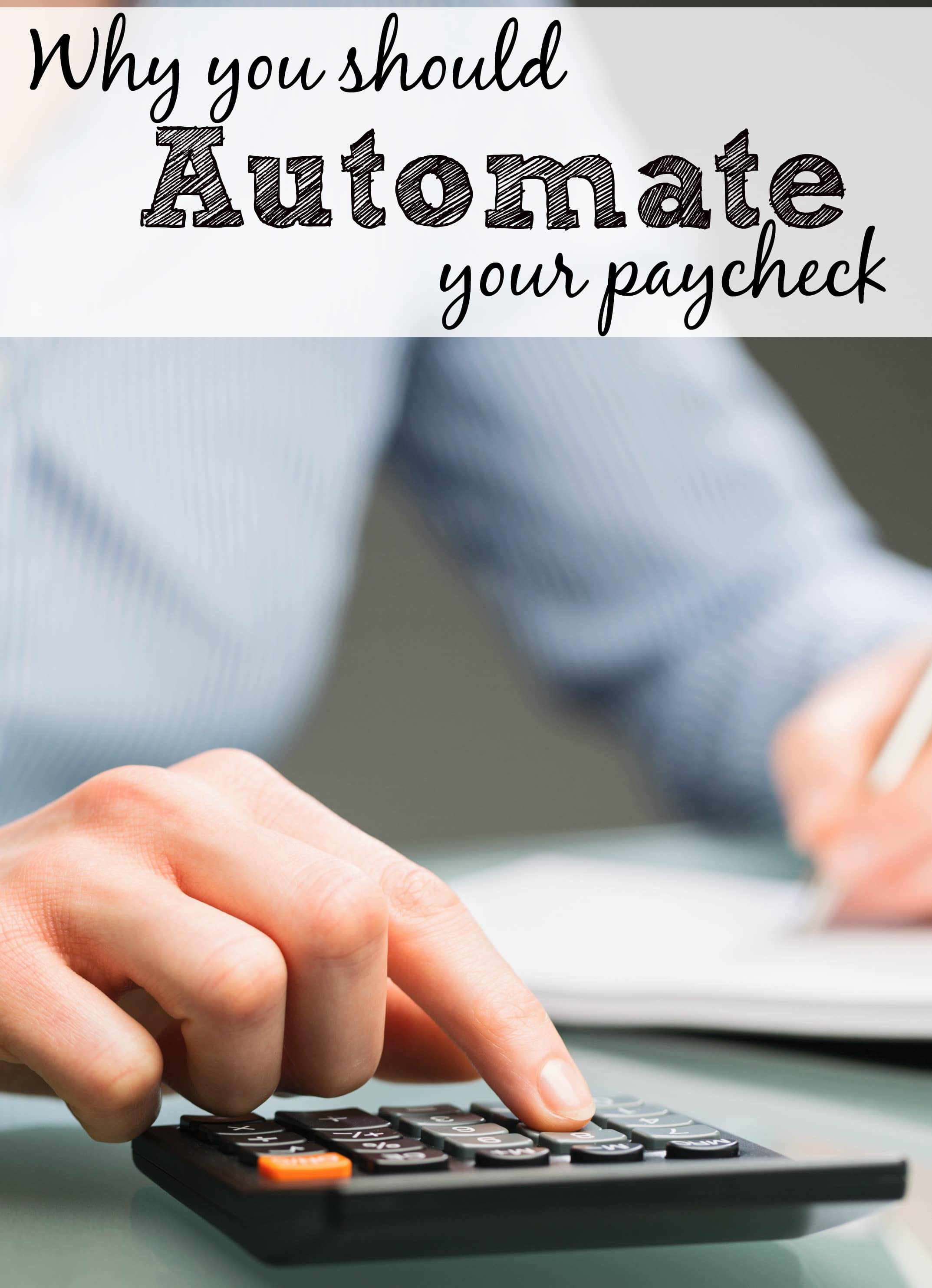 When you automate your paycheck it will be deposited into the bank accounts instead of getting a paycheck. No more cashing the paycheck and then blowing a bunch of money on a nice dinner before you even get it to the bank. It just makes it a little harder to spend. You can still go to the bank and get it out, but it's a lot harder than just grabbing an extra $20 before you deposit the cash.